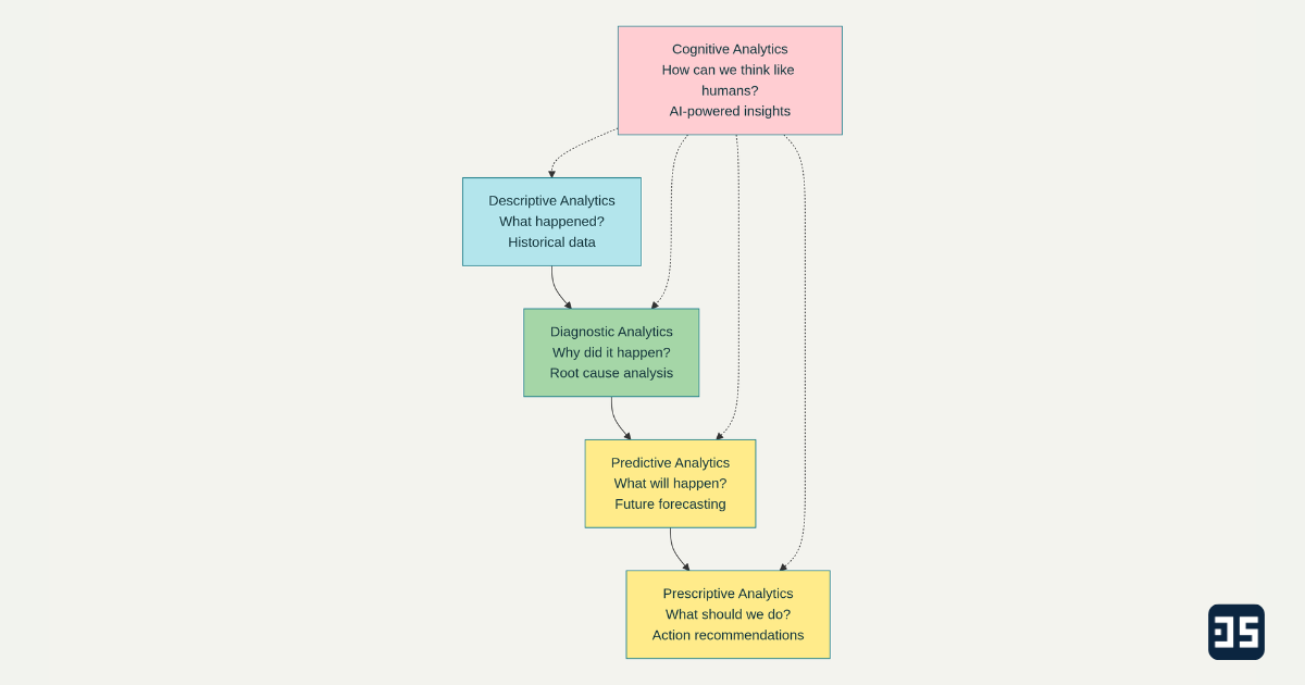 From basic historical reporting to AI-powered cognitive insights, these analytics types form a comprehensive framework that enables businesses to maximize the value of their data investments.